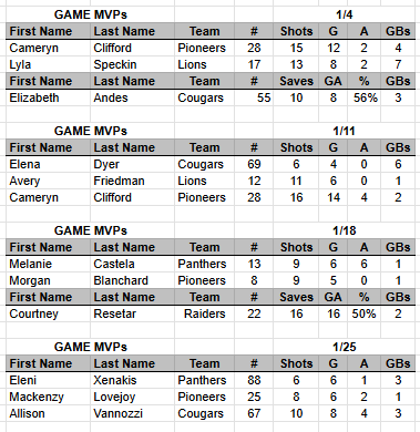 Crazy 8’s Game MVPs